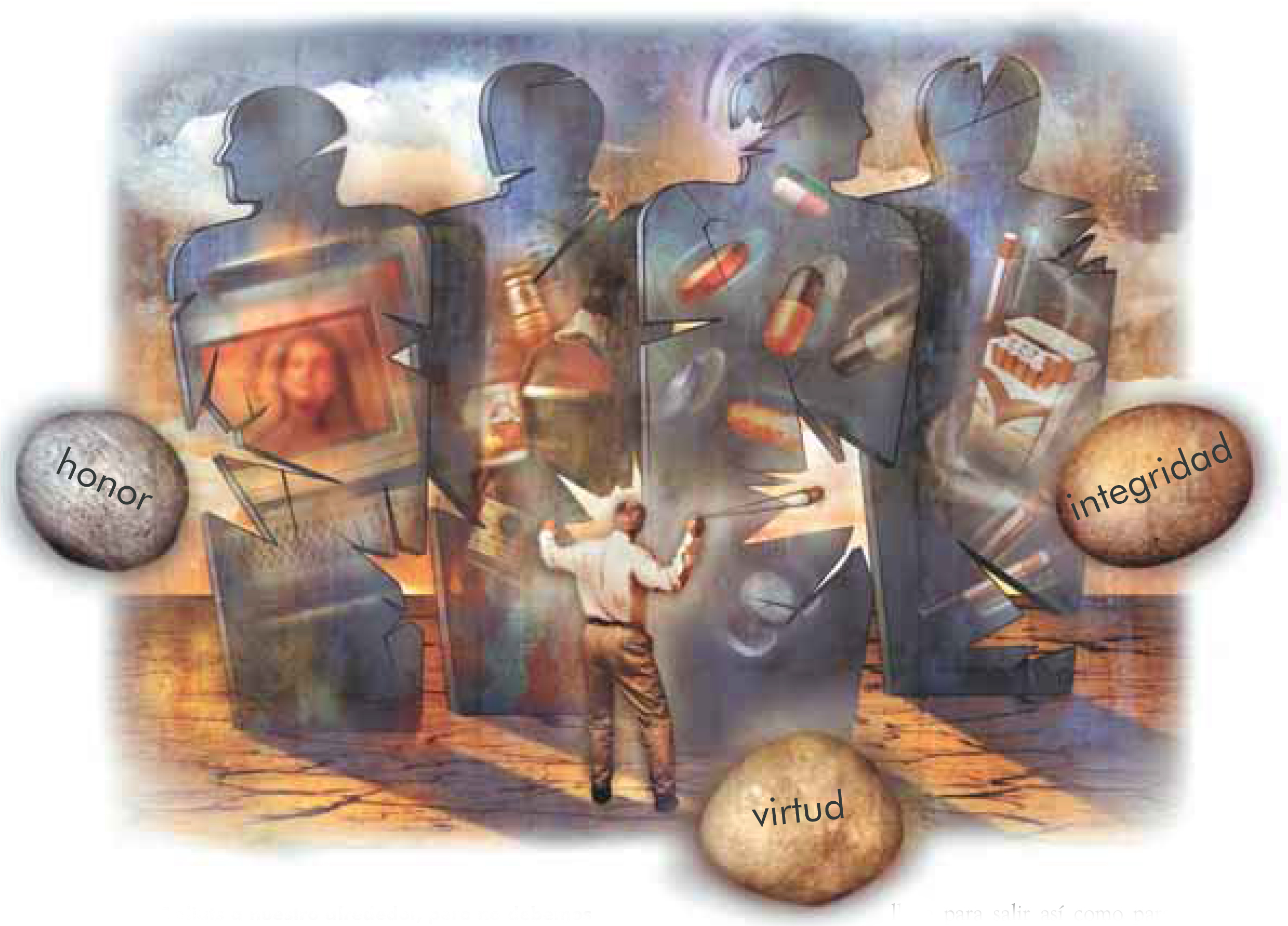 Es casi imposible evitar sus productos por completo, pues se ven por todas partes. Mas no debemos temer si tenemos la honda de la verdad en nuestras manos. Hemos recibido enseñanzas y consejos. Tenemos en nuestro poder las piedras de la virtud, el honor y la integridad para usarlas en contra de esos enemigos que quisieran conquistarnos. Cuando nos desafíen, podemos “herirlos en la frente”, hablando en lenguaje figurado. Podemos triunfar sobre ellos disciplinándonos para evitarlos. Podemos decirles a todos ellos, como David dijo a Goliat: “Tú vienes a mí con espada y lanza y jabalina; mas yo vengo a ti en el nombre de Jehová de los ejércitos, el Dios de los escuadrones de Israel, a quien tú has provocado”.