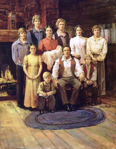 Al encaminarse al este, hacia Waterloo, para reunirse con la Iglesia, la familia Smith se despidió por última vez de su cabaña de troncos. □