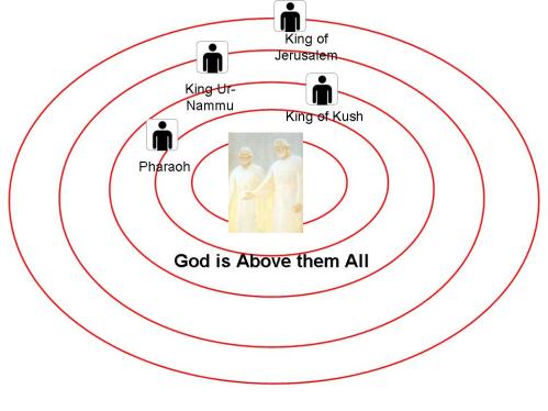 El Faraón probablemente también sabía del rey de Mesopotamia, que quizás era el rey Ur-Nammu de la ciudad de Ur. Este rey probablemente era visto ocupando una órbita cercana al gobernante egipcio. El reino nubio de Kush había llegado a ser muy poderoso en esa época, pero los egipcios también dominaban a este grupo. Son muy grandes las probabilidades de que el rey egipcio se considerara a sí mismo como el cuerpo que gobernaba las órbitas del liderato, o sea, la fuerza centrífuga que controlaba a los líderes de la tierra.