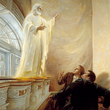 Pero la obra de la Restauración no había terminado… [El Templo de Kirtland, el primer templo construido en esta dispensación]… fue dedicado el 27 de marzo de 1836. Una semana después, el 3 de abril, se llevó a cabo una reunión allí. Después de una solemne y silenciosa oración, el Señor Jesucristo [se apareció a José y Oliver]… Moisés, Elías y Elías el Profeta aparecieron también [en el Templo de Kirtland] y le entregaron a José [las llaves del sacerdocio] (véase D. y C. 110).
