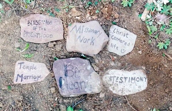 Este año, nuestros nietos escribieron el tema de sus mensajes sobre rocas y luego, uno a uno, las enterraron unas junto a otras para representar el fundamento seguro en el que se basa una vida feliz. El hilo conductor de los seis mensajes era la inmutable verdad eterna de que Jesucristo es la piedra angular de ese fundamento.