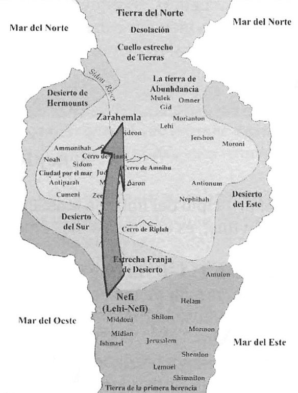 • Mosíah 8: 6-12 Limhi envió una vez cuarenta y tres personas a buscar a Zarahemla. En este punto, Limhi preguntó a Ammón si él podía interpretar idiomas, y Ammón le dijo que no podía (v. 60). El rey explicó más acerca de la excursión para encontrar la tierra de Zarahemla y obtener ayuda para liberarlos del yugo (v. 7). Ellos no tuvieron éxito en sus esfuerzos, pero descubrieron «una tierra entre muchas aguas, … cubierta de huesos de hombres y bestias, y … con ruinas de edificios de todo tipo.»