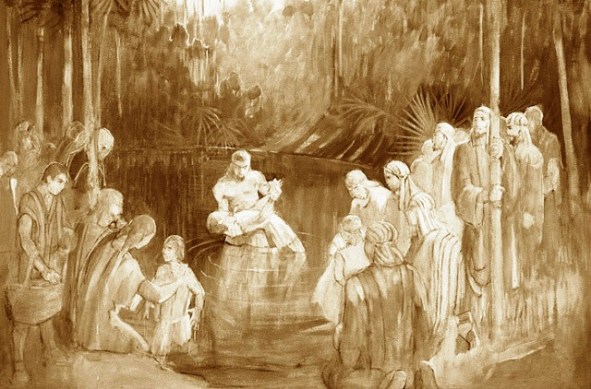 En este punto, Alma y Helam fueron «sepultados en el agua» y «se levantaron y salieron del agua regocijándose, pues fueron llenos con el Espíritu.» Algo similar sucedió en nuestra dispensación cuando José Smith y Oliver Cowdery se bautizaron el uno al otro en el Río Susquehanna después de haber recibido el sacerdocio aarónico.