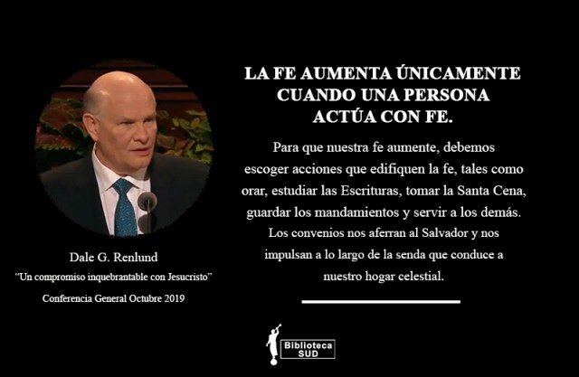 Sería bueno si una mayor fe pudiera transmitirse como la gripe o el resfriado común. Así, un simple estornudo “espiritual” edificaría la fe en los demás, pero no funciona de esa manera. La fe aumenta únicamente cuando una persona actúa con fe. Esas acciones suelen estar motivadas por invitaciones que hacen otras personas, pero no podemos “hacer crecer” la fe de otra persona o depender solamente de los demás para reforzar la nuestra. Para que nuestra fe aumente, debemos escoger acciones que edifiquen la fe, tales como orar, estudiar las Escrituras, tomar la Santa Cena, guardar los mandamientos y servir a los demás.