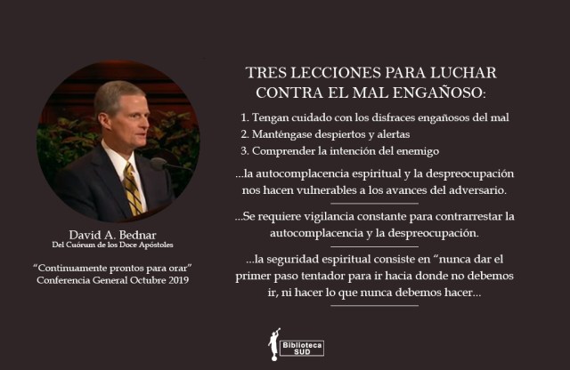 “Sí, y también os exhorto […] a estar continuamente prontos para orar para que no seáis desviados por las tentaciones del diablo […] porque he aquí, él no os recompensa con ninguna cosa buena”5.