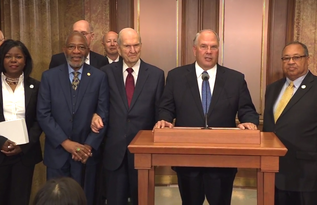 A lo largo de los años, presidentes de los Estados Unidos, reyes, jueces, primeros ministros, embajadores y funcionarios de muchos países han venido a Salt Lake City y se han reunido con nuestros líderes. El presidente Nelson fue el anfitrión de los líderes de la Asociación Nacional para el Progreso de las Personas de Color, una organización de los Estados Unidos comprometida con la igualdad de derechos sin discriminación por motivos de raza. Recuerdo estar de pie, hombro con hombro con estos amigos y líderes, cuando el presidente Nelson se unió a ellos para pedir un mayor civismo y armonía racial en el mundo23.