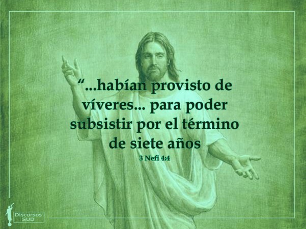 «No necesita endeudarse para obtener un suministro para un año. Planifique aumentar su suministro de alimentos como lo haría con una cuenta de ahorros. Ahorre un poco para almacenar cada cheque de pago… Hablo con un sentimiento de gran urgencia… La revelación de producir y almacenar alimentos puede ser tan esencial para nuestro bienestar temporal hoy como lo fue subir al arca a la gente en los días de Noé». (Teachings of Ezra Taft Benson, p. 265-6 as taken from Latter-day Commentary on the Book of Mormon compiled by K. Douglas Bassett, p. 398-9)