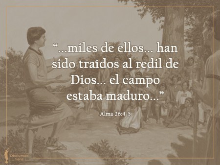 Por lo tanto, vemos que el Señor en su omnisciencia sabe cuándo el campo está maduro. Nosotros no. Nunca debemos decir, «no hay esperanza con esta persona o con este grupo de personas». A través de los ojos espirituales, nos sorprenderá ver cuán maduro esta realmente el campo. Incluso si la tarea parece tan formidable como predicar a los antiguos Lamanitas, el Señor nos ha prometido que la gente de la última dispensación está lista para el evangelio, porque él dijo: he aquí, el campo blanco está ya para la siega; y he aquí, quien mete su hoz con su fuerza atesora para sí, de modo que no perece, sino que trae salvación a su alma (DC 4: 4).
