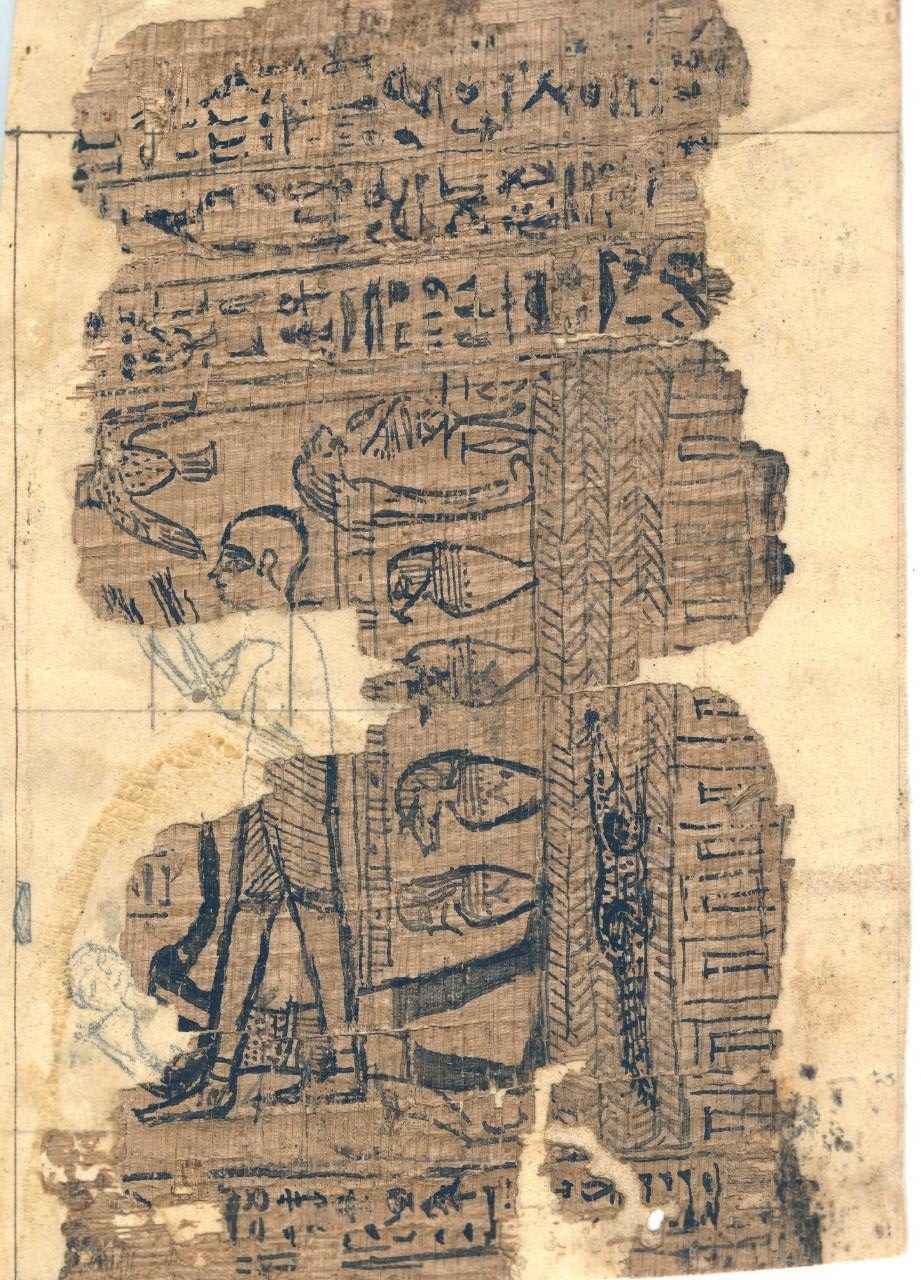 Muhlestein: En algún momento, estos textos fueron copiados alrededor del año 200 a. C. Sabemos esto porque el dibujo original del Facsímil 1 estaba en un fragmento de papiro que perteneció a un sacerdote al que podemos identificar. Podemos rastrear su linaje: su padre, abuelo, hijo, nieto y bisnieto. Gracias a esto, podemos estimar con bastante precisión la época en la que vivió este sacerdote.[9]