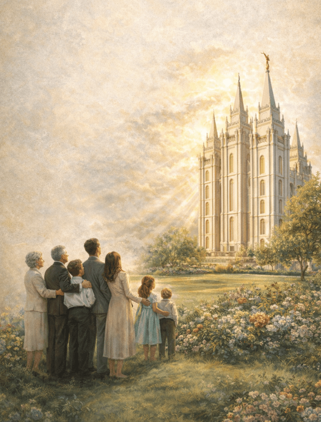 Dentro de este marco eterno, la familia adquiere un significado sagrado. Las relaciones familiares no están destinadas a terminar con la muerte, sino a continuar más allá del sepulcro mediante convenios eternos. El bautismo, el matrimonio eterno y el sellamiento familiar son ordenanzas esenciales que deben efectuarse en la tierra, por la debida autoridad del sacerdocio, y que pueden extenderse vicariamente a favor de quienes murieron sin haberlas recibido. Así, vivos y muertos dependen unos de otros para alcanzar la plenitud de las bendiciones prometidas.