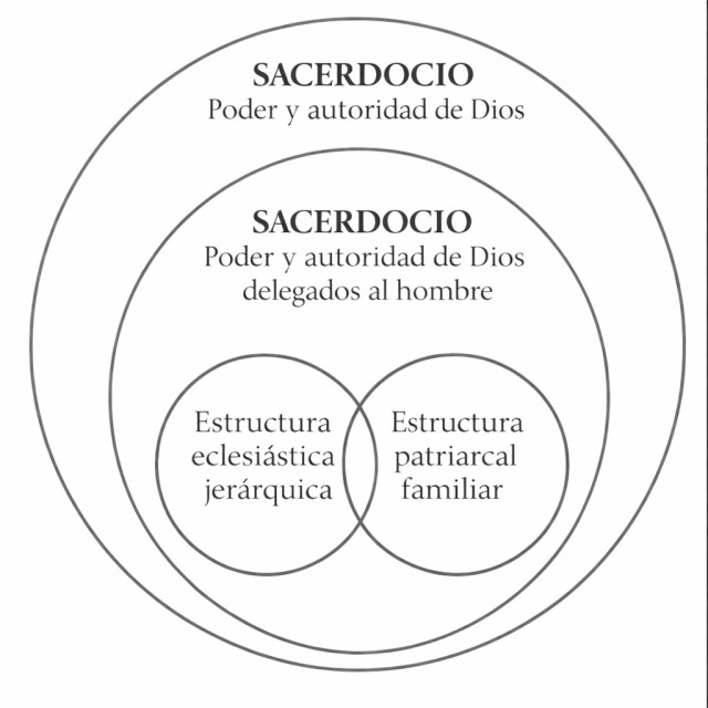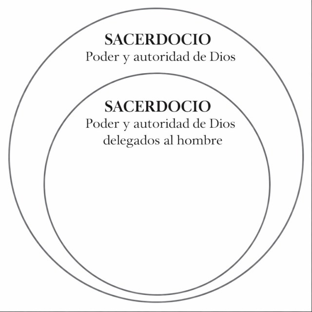 En el siguiente diagrama, el círculo más grande representa el sacerdocio total de Dios, es decir, Su poder y autoridad. El círculo interior representa el sacerdocio de Dios que Él ha delegado a Sus hijos sobre la tierra. Los dos círculos superpuestos dentro del círculo menor representan las dos estructuras de gobierno que el Señor ha establecido desde los días de Adam y Eve: la jerárquica o eclesiástica y la patriarcal o familiar. Las ordenanzas y los convenios del evangelio de Jesucristo están representados en la parte donde los círculos se superponen.