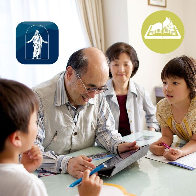 También podemos ser ejemplo de estudio del Evangelio. Podemos escuchar pasajes de las Escrituras o discursos de la conferencia general y podemos enseñar a nuestros hijos a utilizar los planes de estudio y las herramientas para tomar notas de la aplicación Biblioteca del Evangelio.