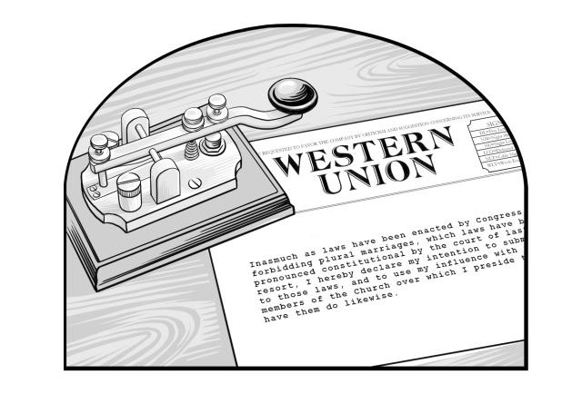 “No estamos enseñando la poligamia o matrimonio plural, ni permitiendo a persona alguna su práctica”, decía en parte; “yo, por la presente, declaro mi intención de sujetarme a dichas leyes, y de ejercer mi influencia en los miembros de la Iglesia a quienes presido para que hagan lo mismo”33.