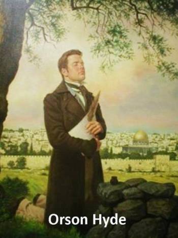 El 24 de octubre de 1841, el élder Hyde se arrodilló en el Monte de los Olivos, en Jerusalén, y suplicó al Padre Celestial que dedicara y consagrara esa tierra “para el recogimiento de los restos esparcidos de Judá, conforme a las predicciones de los santos profetas” «Ahora, Señor! Tu siervo obedeció la visión celestial que le dio en su tierra natal. . . dedicar y consagrar a Ti esta tierra «(Historia de la Iglesia, 4: 456).
